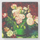 Porta copos de pedra apresentando a pintura a óleo de Vincent van Gogh em Bowl com Peonies e Rosas (1886). Lindos peões e rosas cor-de-rosa e brancos sentam-se num vaso verde contra um fundo vermelho. Um presente maravilhoso para fãs do Impressionismo Poste e da arte holandesa.
