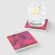 Uma porta copos de pedra com fundo abstrato legal. Os derrames vermelhos e roxos criam um design vibrante moderno e ousado.