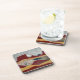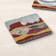 Uma paisagem abstrato com cores e texturas únicas mostrando uma cena do deserto com um sol azul ascensão e um cacto em tons de vermelho, cinza, bege e azul.