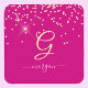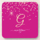 Um design de tendência de brilho dourado com monograma dourado e nome de script branco em fundo fuchsia.