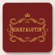 A gíria do país da língua na bochecha descreve aqueles que ficaram um pouco "grandes demais para suas calças" / pretensiosa. A design de porta copos de de de de Bebida apresenta texto dourado e quadro de coroa em fundo vermelho escuro.