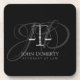 Porta copos profissional com escalas de símbolo de justiça e seu texto sobre fundo preto. Personalize-o.