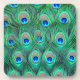 Array de penas de pavão impressionantes em tons de lacaio, azul, verde, aqua.