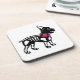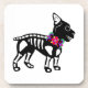 Esqueleto de Boston Terrier com um colar colorido da flor em vermelho, em amarelo, em verde e o roxo. Silhueta preta com ossos brancos. Fundo transparente para a cor personalizada. Adicione a opção do texto para personalizá-la.
