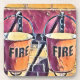 Uma design de arte retrógrada de baldes de fogo em uma antiga estação ferroviária vitoriana.