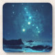 Imagem cêntrica do norte gelado como vista à noite. Estrelas brilhantes e formas celestes podem ser vistas brilhando sobre cima, brilhando e luminosos. Eles iluminam o terreno rochoso abaixo. As sombras azuis escuras são lançadas sobre as rochas e o gelo à distância.
