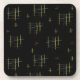 Gritos e linhas amarelos, burrentas e brancas em um padrão repetido em um fundo preto sugere uma sensação de movimento e energia.