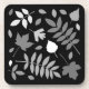 Folhas de design em diferentes silhuetas folhosas em cinzentos e brancas sobre fundo preto.