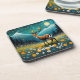 Veado bonito parado em um campo floral com montanha e pinheiros à noite. Simplesmente personalize o nome ou exclua-o.