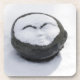 Uma nova camada de neve cobriu uma escultura de cabeça redonda feliz Buda. À medida que a neve derreteu, parecia que a escultura estava a obter um rosto de neve. Os agradáveis recursos da estátua mostram através de sua máscara de neve criando uma cena de inverno divertida. Fotografia digital a cores. Copyright © 2012 Claire E. Skinner. Todos os direitos reservados.