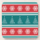Ilustração feliz de Natal com árvore de Natal e decoração de flocos de neve em fundo vermelho, branco, azul e turquesa listrado
