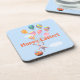 Costeletas de bebidas com a minha trabalho de arte de um coelhinho fofo segurando em um monte de balões listrados flutuando no céu enquanto carregando um cesto cheio de ovos de Páscoa. Texto personalizável diz "Felz pascoa!"