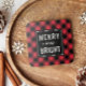 design de porta copos de na moda de bebida de férias apresenta um padrão de xadrez de verificação de búfalos vermelho e preto com Feliz e design de tipografia moderna Bright em preto e branco.