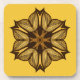 Porta copos de flores amarelas com trabalho de arte de abstrato a criada de um elemento de pétala desenhado a tinta. Este bonito trabalho de arte floral decorativo tem cores amarelas e castanhas escuras quentes.