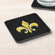 Flor de lis bonito e elegante com uma aparência brilhante do ouro do falso, com um preto no fundo preto do damasco. Um símbolo verdadeiro da classe e da elegância, este ícone histórico clássico é um acento bonito. Todo o © de Copyright do design www.CuteComfy.com 2012