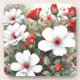 Porta-copo Flores Brancas e Vermelhas Aquarela Elegante
