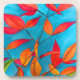 Um design de pintura a aquarela original de Ssacha Grossel, de folhas coloridas de amarelo e laranja, de outono ou de outono. Este design folínico vívido e colorido pareceria excelente em qualquer ambiente. Original e bonito, esta laranja com design botânica de fundo azul-céu viveria qualquer ambiente.