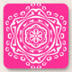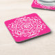 Esta mandala branca senta-se sobre um fundo rosa brilhante. A cor é brilhante e alegre. Parte da Coleção Pympbys Mandala. Este design pode não ser impressão tão brilhante quanto aparece on-line.