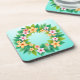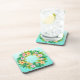 Um arranjo gracioso de flores laranja e cor-de-rosa, acentuado com folhas verdes e peludas. Colocada contra um pano de fundo de gradação de turquesa, este design irradia charme tropical e elegância serena.