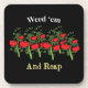Tomates são uma base para a maioria dos jardineiros e nenhum de nós pode esperar por essas suculentas frutas vermelhas. Design gráfico divertido com uma fileira de plantas de tomate cercada pela brincadeira com as palavras Semeando-as e Reap.