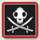 Sirva suas bebidas nessas portas copos plásticas de Duro com cortiça de volta com esta renderização vetorial realista de um Crânio Pirata de Gatinho Jolly e Sabers. E por que não haveria um Pirata de Gato? Um crânio de gato e ossos não são bonitinhos para piratas de gatos? Jolly Gatinho é, é claro, uma peça sobre Jolly Roger, os piratas do crânio e da bandeira dos ossos mostram suas vítimas enquanto as perseguiam. Fiz duas versões. Este baseado em um crânio real de um gato e um mais fofo em uma versão de manga. Como fundo, escolhi preto sinistro, vermelho sanguíneo. Embora a crista seja famosa como "crânio e ossos", escolhi dois sabres curvos em vez de ossos. Porque eu acho que sabores parecem legal.