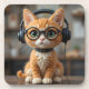 Esta peça de arte de feltro excepcionalmente charmosa e detalhada apresenta um adorável gato gengibre, meticulosamente cortado por agulhas de vários tons de laranja, gengibre e lã de creme para criar uma textura de pelo macia e lisa. O gato tem olhos verdes ou aveludados expressivos — cortados por agulhas ou acentuados com pequenas miçangas de vidro — junto com um nariz rosa minúsculo e bigodes brancos delicados. Ele veste um hélice preto humorístico, de tamanho excessivo, criado a partir de lã densa, completo com fones de ouvido integrados feltrados por agulhas pretas. Óculos redondos, de formato preto, descansam sobre o nariz, e uma simples coleira preta adiciona ao seu encanto brincalhão. Sentada em pé sobre uma superfície de madeira amarrada em agulha castanha escura, a cena é colocada sobre um fundo suavemente turvo, semelhante a uma oficina ou interior de escritórios acolhedores. O olhar geral é carinhoso, humorístico, e mostra detalhes texturais incríveis e artesanato na arte do feltro.