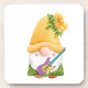 Gnome tocando violão com girassol no chapéu de uma montanha russa.