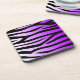 Um padrão de zebra roxo e preto selvagem e assado é apresentado nestas portas copos de cortiça.