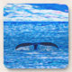 Esta porta copos apresenta um impressionista oceano azul e cauda de baleia. Seriam portas copos excelentes para a sua casa de praia, para a vida costeira, ou para o seu bar tiki tropical.