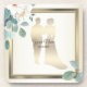 Porta-copo Green Leaves Flower Golden Frame Wedding Party