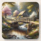 This enchanting countryside scene captures a dreamy cottagecore landscape filled with soft golden light, blooming wildflowers, and a gently flowing stream beneath a rustic wooden bridge. A charming cottage rests among lush trees brushed in pastel pinks, fresh greens, and warm amber hues, creating a whimsical storybook atmosphere. The composition blends folk-inspired romance with painterly detail, evoking quiet mornings, birdsong, and peaceful rural escapes. Delicate florals frame the water’s reflective surface while dappled sunlight filters through tall trees, adding warmth and depth to the serene setting. The overall aesthetic feels nostalgic, cozy, and softly magical—perfect for those drawn to cottagecore charm, pastoral beauty, and fairytale-inspired landscapes. The harmonious color palette of blush blossoms, buttery sunlight, mossy greens, and sky blues creates a calming yet uplifting mood that feels both timeless and on-trend. AI generated artwork.