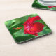 Nesta imagem impressionante, uma flor vermelha de hibisco é destacada contra um fundo verde molhado.