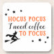 "Hocus Pocus I need cafein to focus" portas copos de bebidas personalizadas engraçadas para o Halloween apresentam um moderno design decorativo de laranja e tipografia negra com bruxas voadoras e sotaques estelares.