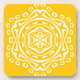 Esta mandala branca senta-se sobre um fundo amarelo de mel. As cores são quentes e pacíficas. Parte da Coleção Pympbys Mandala.