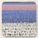 Um campo de flores Hyacinth, brancas, roxas e rosa.