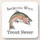 Presente perfeito para o ávido pescador de trutas, pescador de moscas ou pescadora de moscas na sua vida com uma cor de cheio e uma imagem detalhada de uma poderosa truta arco-íris saltitante com o texto Infectado com Febre Tranquila.