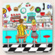 Arte nostálgica. Anos 50 casal de mãos dadas no restaurante.