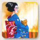 Arte original do estilo japonês moderno, de uma pintura de Sacha Grossel, de um japonês Geisha, com um quimono azul real e um obi vermelho. Esta arte foi influenciada pela design asiática e pela arte japonesa.