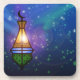 Ilustração espumante com uma lanterna oriental em uma cena mágica do céu noturno.