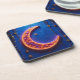 Fundo azul vibrante com uma lua crescente brilhante feita de luzes de néon. A lua é enfeitada por várias estrelas, iluminada em tons de laranja, roxo e amarelo, criando uma atmosfera caprichosa e encantadora. Além disso, há decorações em estrela que se aproximam do tema celeste geral, valorizando o toque mágico da cena. A combinação de elementos brilhantemente iluminados contra o fundo azul profundo cria um contraste visualmente impressionante.