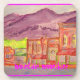 mostra uma cidade ocidental de carolina no norte, com montanhas ao fundo do esboço original de aquarela e o slogan de "Moonshine de montanha"!