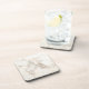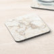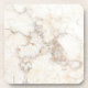 Esta porta copos apresenta uma textura moderna de mármore branco com veias laranja e marrom.