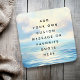 Mensagem personalizada ou porta copos de aspas com sua mensagem impressa em uma pintura a óleo representando um nascer do sol no mar com nuvens e ondas calmas.
