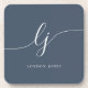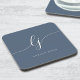 Monograma Simples Caligrafia Elegante Marinho Feminino Dusty Blue White Script Iniciais de Bebida Coaster