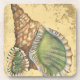 Se você não pode ir à praia hoje, pegue esta imagem clássica do estilo desta única casca verde e marrom hoje! Esta casca do oceano é cercada por areia quente nesta pintura e se excelente em qualquer produto náutico.