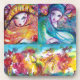 Máscaras mascarada azuis coloridas coloridas azuis, brancas, coleção musical de pinturas aquáticas figurativas abstratos com figuras dançantes, músicos, figurinos vibrantes de carnaval, máscaras com penas em rosa claro, fuchsia, verde, vermelho, azul, amarelo, inspiradas na Comédia de Arte , máscaras italianas e Carnaval de Veneza .