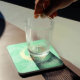 Instrutor de meditação do Yoga Studio moderno / Treinador de vida / Healer / Reiki Master / Massage cita Duro de plástico. Meditação Faux Gold Foil Yoga Meditação Easy Pose / Sukhasana Pose com Símbolo ZEN e OM em Fundo de Textura Verde Gold Foil.