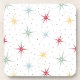 Viva sua mesa de café com essas fabulosas meios séculos de bebidas da era atômica! Este design apresenta rastros de estrelas em vermelho, azul, verde e amarelo e acentuado com pontos pretos.