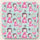 Etiquetas de design, ornamentos, cartas, travesseiros, relógios de parede, abridores de garrafas, conselhos de corte, cadernos, relógios, carteiras, conselhos de apagar seco e muitos outros itens com um design fofo com garotas em vestidos de coração cor rosa, bolsas de polca rosa e branca pontilhadas, estrelas roxas profundas e fundo azul de stripe de cristão.