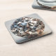 ball with triangles fragments surface, silver nougat tones, irregular pyramides, beverage coaster